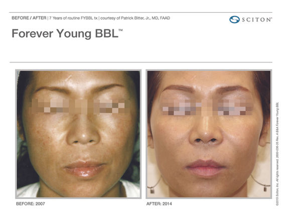 Now there’s Forever Young BBL™ from Sciton, a revolutionary treatment using BBL™ technology to send light energy deep into the skin to boost your body’s natural ability to fight the appearance of aging. The result? Skin that’s visibly younger looking, year after year!